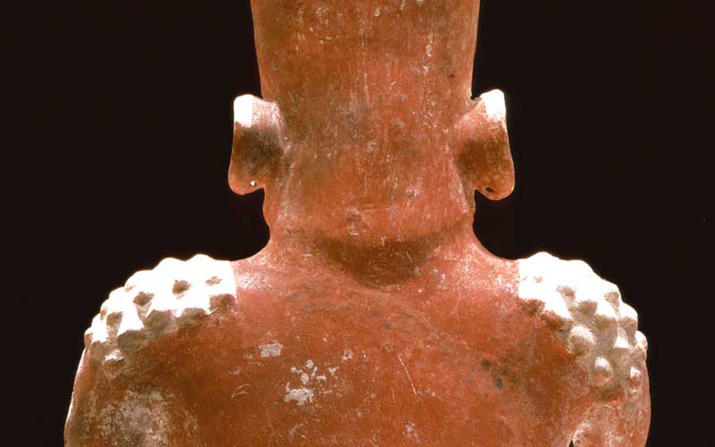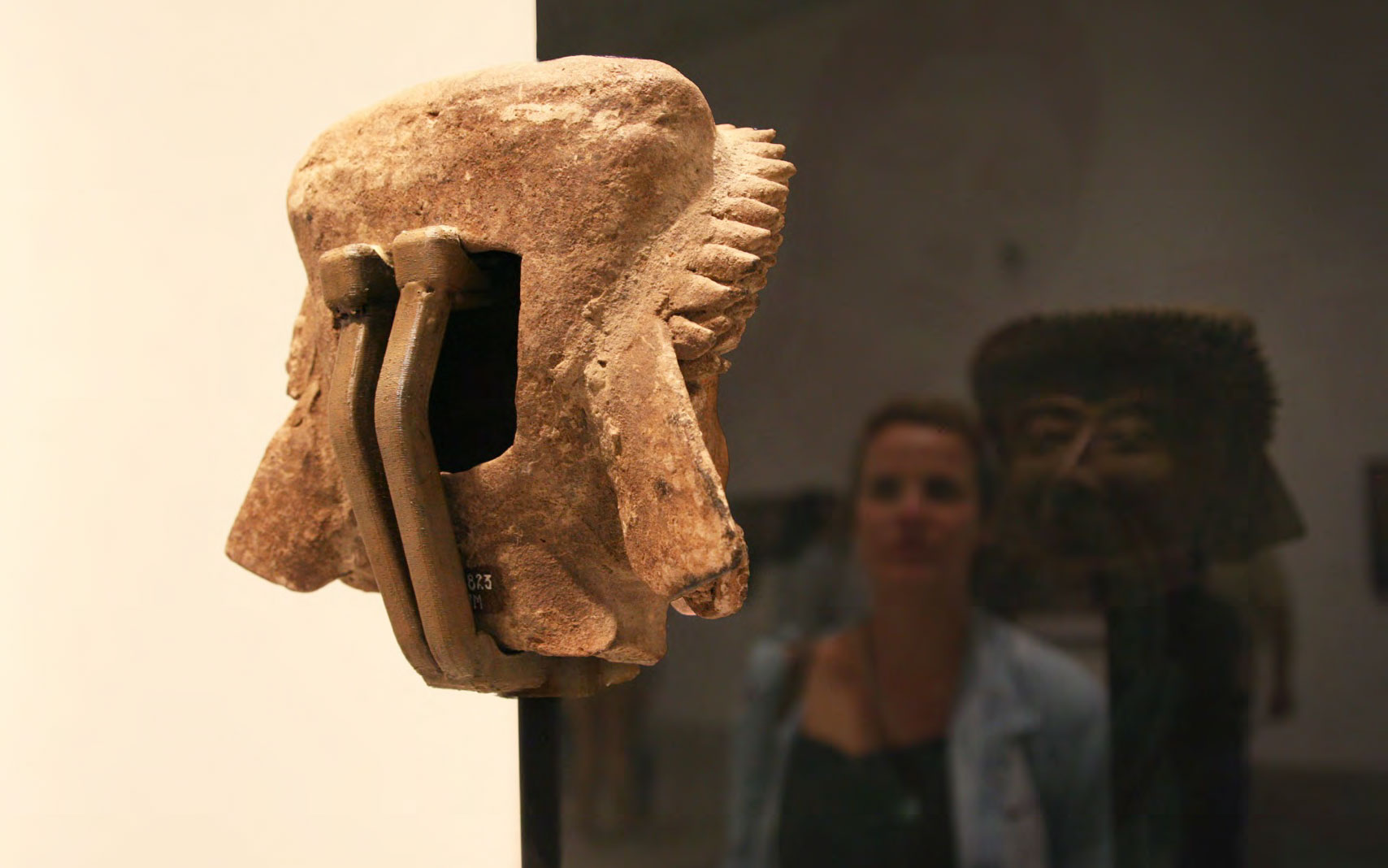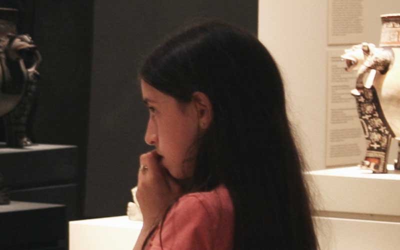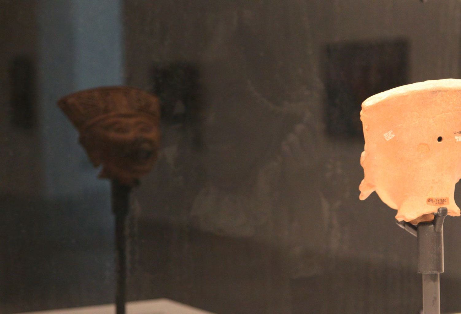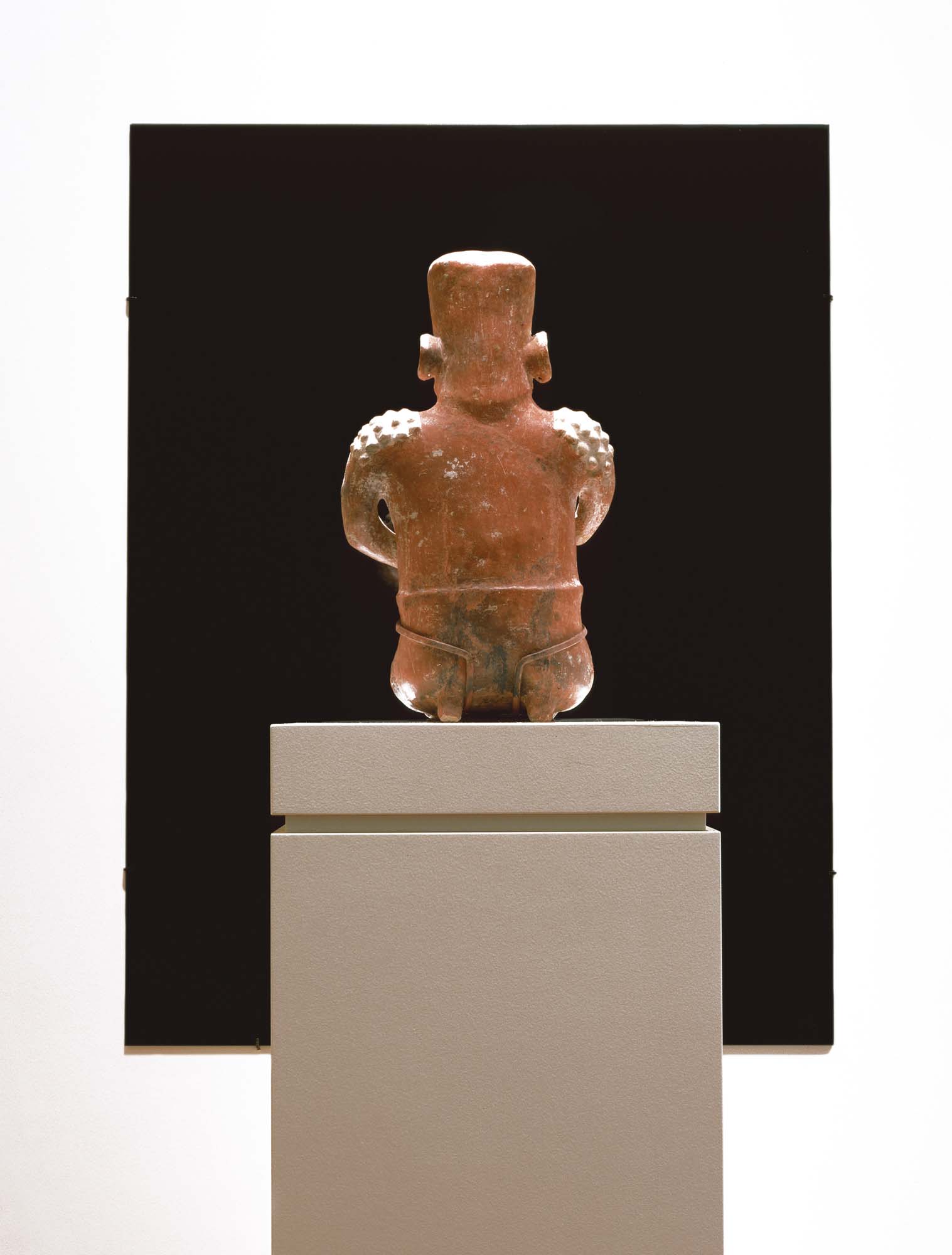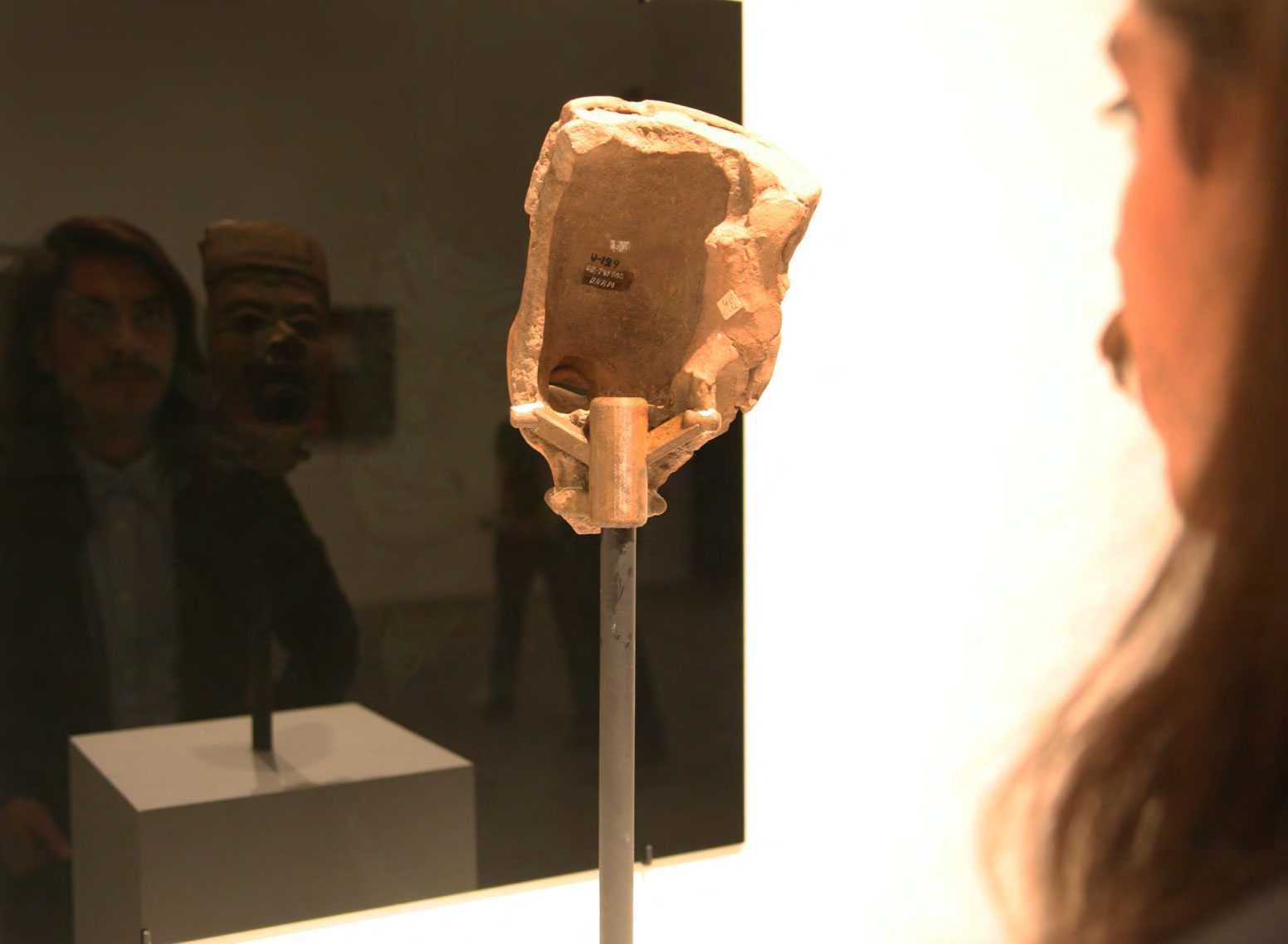 Produced specifically for the MUAC in Mexico City and incorporating pre-Colombian works from the UNAM’s own collection, Indigenous Spectrum is a new large scale museum installation from Pedro Lasch’s Black Mirror/Espejo Negro series. The first installation in the series focused on coloniality at large and was commissioned by the Nasher Museum of Art to accompany its blockbuster exhibition El Greco to Velazquez. Lasch selected sixteen figures from the museum’s permanent collection of pre-Columbian art, and placed them on sculpture pedestals with their backs turned to the viewer. In front of the figures hung large, rectangular black mirrors, reflecting the fronts of the sculptures. After prolonged viewing, ghostly images of Spanish baroque paintings emerged from behind the dark sheets of glass. Standing amidst Lasch’s installation, the viewer saw indigenous art, colonial representation, and his or her own face and body collapsed onto a single mirrored plane.