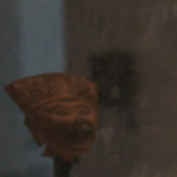 The new installation created for MUAC’s Color Theory exhibition employs a similar play of physical and psychological reflections, but the new pairings intentionally exclude any representation from the Spanish colonial period. The nine chosen objects from Totonaca and other pre-Colombian civilizations are here all masks that face protraits and racial representations of indigeneity from Mexico’s postcolonial repertoire. These darkened postcolonial spectres and their reflected pre-Colombian masks stare back at the viewer through the black mirror, incorporating the present moment through its reflection. Covering a broad historical period (1810-present) and a wide range of representations (from the non-racial to the racist), these spectres include XIX Century ethnographic plates, the India Bonita pageant winner from the 1920s Universal Ilustrado, Diego Rivera’s fresco depiction of Tomás Mejía, the cinematic icon of Tizoc from Mexico’s Golden Era, the heroic Indians of Chucho Helguera, La India María’s most recent appearance as a telenovela character, and the intentionally opaque figure of Comandanta Ramona in her ski-mask. The spectres also expose the role particular media have played in the production and reproduction of what we consider to be Indigenous. Employing both modernist self-reflexivity and contemporary social art practice, these black mirrors make museum visitor’s bodies an unavoidable part of the artwork, therefore also bringing in all the racial associations such viewers may carry with them, be it by their own desire or society’s power of projection. An endless number of ephemeral portraits will thus be created as the MUAC’s visitors see their faces in each black mirror.